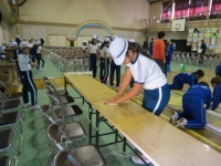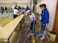 明日の柏葉祭本番に向け、小中学生が協力して、会場作りをしました。