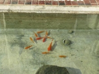 昨日、保健環境委員会の子どもたちが掃除してくれたおかげで、校庭の池が見違えるようにきれいに生まれ変わりました。透き通って底が見えるようになった池で、金魚たちが気持ちよさそうに泳いでいます。