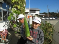 夏の間すくすく育ったヘチマ達を今日収穫しました。ヘチマの実の大きさと重さにみんな驚いていました。