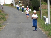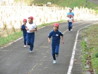 来週、行われる校内持久走記録会の練習として、5・6年生が校外に出て本番のコースを試走してきました。