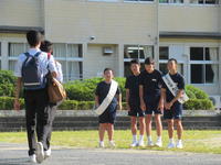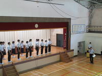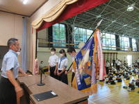 *校長から:「選手の皆さん、暑さの中また、早朝からの練習お疲れさまでした。皆さんの練習を見て感じたこと、それは、『一歩踏み出す勇気』です。上中では陸上・駅伝は特設なので、あえてやらなくてもいい・・。でも、ここに並んでいる皆さんは、駅伝をとおして「自分の弱い心と向き合う」「何かをつかもうとしている」と思います。つまり、一歩踏み出す勇気をもち、それを行動に移すことで見えてくるものがあると思います。選手の皆さん、3年生を中心に、大会までやれることをやりきり、本番ではベストの走りができることを期待しています。頑張ってください!!