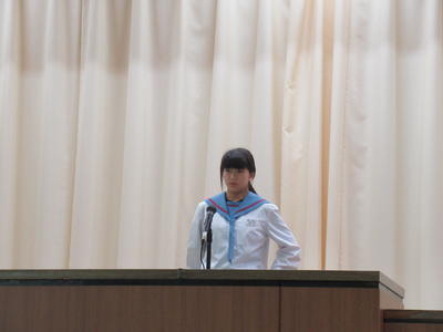 *激励の言葉:全校生徒を代表して生徒会役員が、激励の言葉をおくりました。