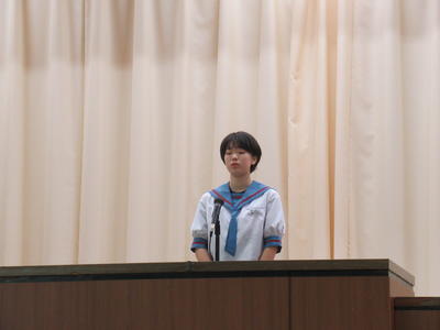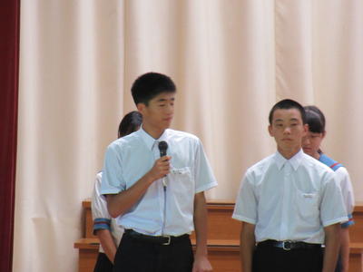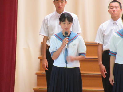 ◇ 各学年代表生徒による、「夏休みの反省と2学期の目標」の発表。