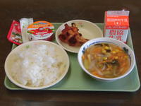 給食メニュー → ごはん 野菜ふりかけ 牛乳 とり肉のガーリック焼き