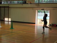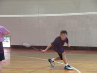 2年生が、ノックと呼ばれるシャトルを左右に出して、ステップして打たせる練習を繰り返しています。