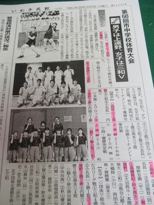 市中学校体育大会バドミントン競技大会で活躍した本校バドミントン部が、8月12日(水)の「いわき民報」に掲載されました。熱戦が思い出されます。遅くなりましたが、お知らせいたします。
