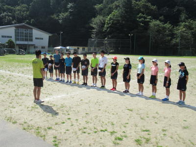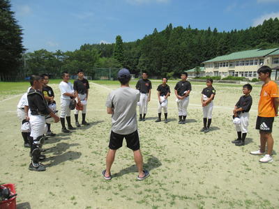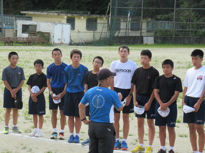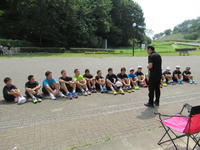 昨年まで、一緒に汗を流した先輩のアドバイスや感想等を聞くことは、子どもたちにとっても、とても意義あることです。練習終了時の先輩の話にも、真剣に耳を傾けていました。