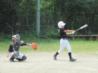 2年生は、バックライトにカラーコーンを置いて、そこを狙って打つ練習です。