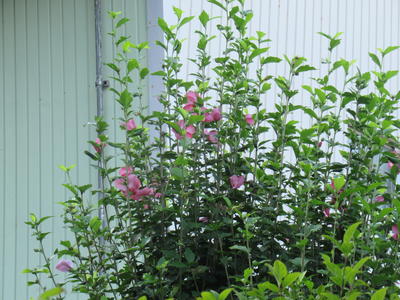 〔おまけ〕体育館入口に、アオイ科の花でしょうか、綺麗な花を咲かせています。