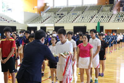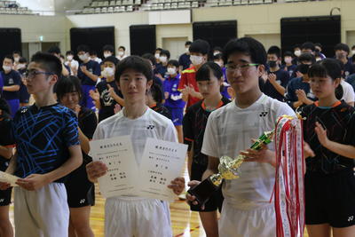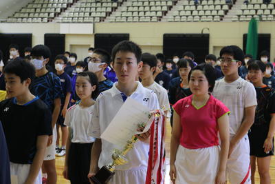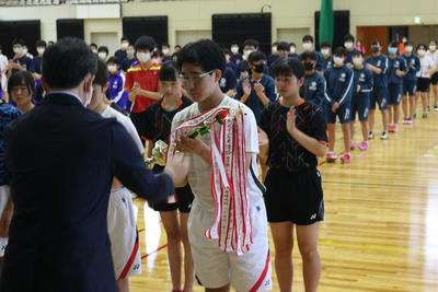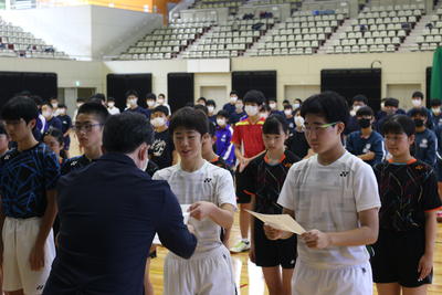 本日まで行われた市中体連バドミントン大会の、閉会式&表彰式の様子です。