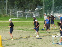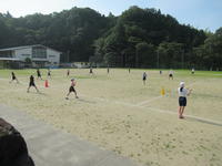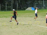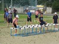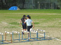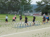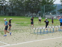 *陸上のみに出場する生徒は、ハードルやラダーを使って、基本のドリル練習に取り組んでいます。