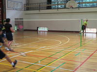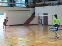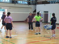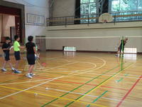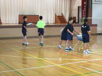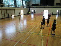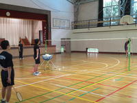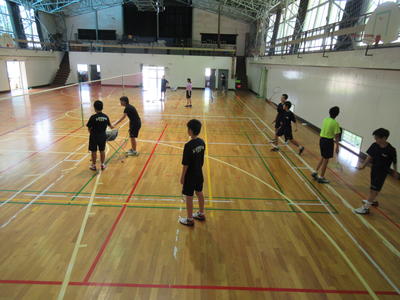 バドミントン部は体育館で、バレーボール部は、小学校の体育館でそれぞれ練習です。