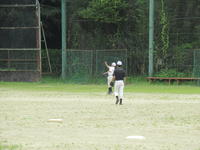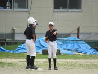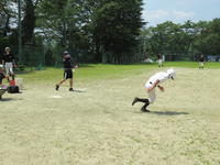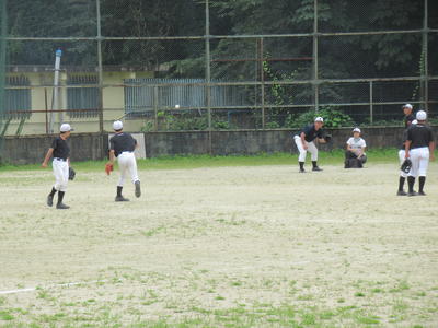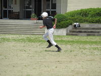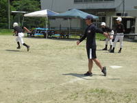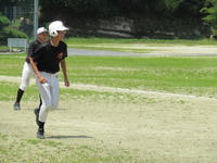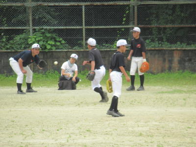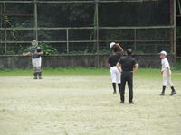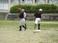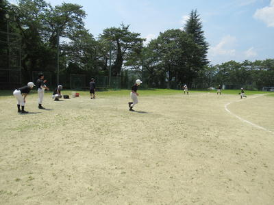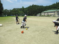 *ベースを前にして、通常より短い塁間でのゴロ捕球の練習です。基本の繰り返しが大切ですね。