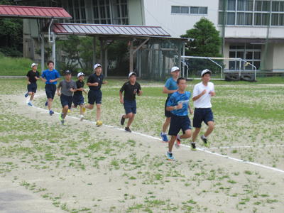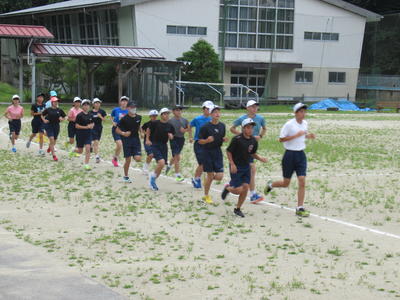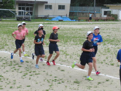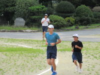 特設駅伝部の練習の様子です。熱中症予防のため、全員に帽子を着用させ、こまめに水分補給をさせながら練習を行っています。