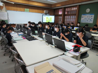 本日3年生は、バドミントン部の生徒が中体連大会出場のため、写真のように教室は人数が少ない状況です。