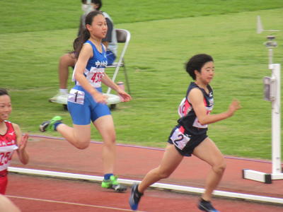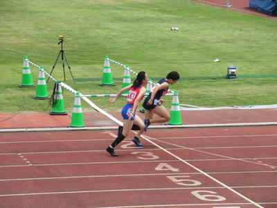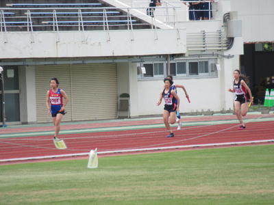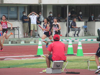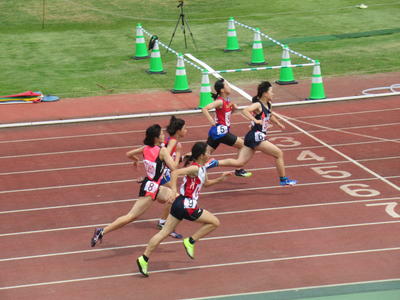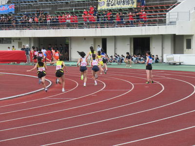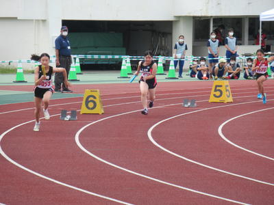 〔女子1・2年4×100MR予選〕*中央の5レーンです。