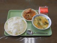 給食メニュー → トマキムチ丼 牛乳 たこナゲット