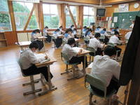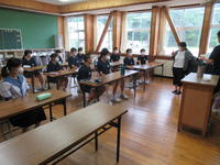 1校時の国語のテストに取り組んでいる様子です。頑張れ!!