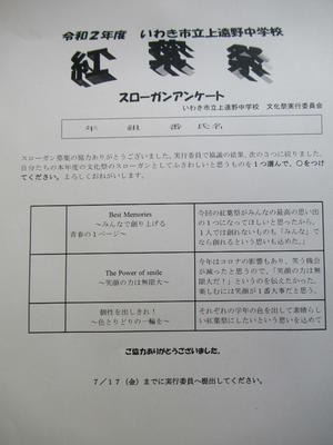 明日まで、各学年で下の写真にあるアンケートを実施し、今年度の紅葉祭スローガンを決定する予定です。