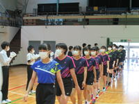 *選手入場(応援団と、1年生バドミントン部生徒の拍手で入場です。)