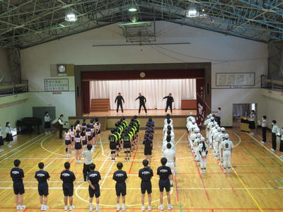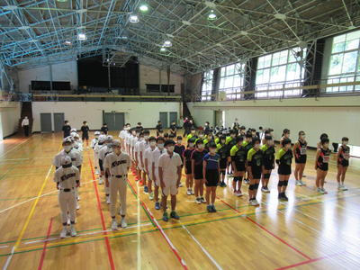 17日(金)の6校時、市中学校体育大会出場選手壮行会が体育館で行われました。