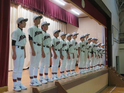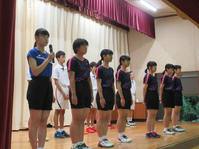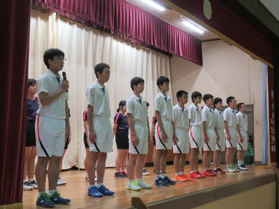 選手の大会にかける意気込みや応援団の迫力ある応援、全校生が一つになった会場の空気など、すばらしい壮行会だった報告を受けました。さすが上中生です。21日から予定されている大会での活躍が楽しみです。