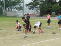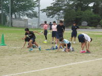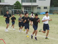 いよいよ明日から市中体連大会のトップを切って、陸上競技大会が開催される予定です。本日は、学校での最後の朝練になりました。トラックを特設駅伝部の生徒が走る中、スタートやバトンパスの練習を繰り返し行っていました。