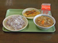 給食メニュー → ゆかりごはん 牛乳 オムレツ・野菜あんかけ