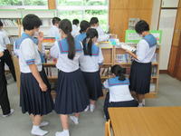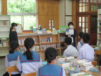 本日は、学校司書の先生が1学期最後の本校勤務日であるため、全学年の国語の時間を使って、夏休み前恒例の「ブックトーク」(一定時間内に何冊かの本を、複数の聞き手に紹介すること)を行います。