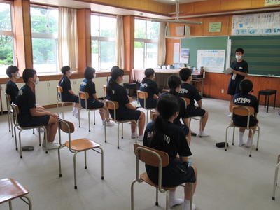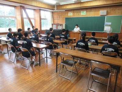 本日の昼休み、来週17日(金)に予定されている市中体連壮行会に向けて、創作部の生徒による特設応援団が結成されました。最初に組織編制を行い、団長・副団長(2人)・太鼓・団旗を、それぞれ決定しました。そして、団長となった3年生が進行し、今後の練習日程を確認しました。
