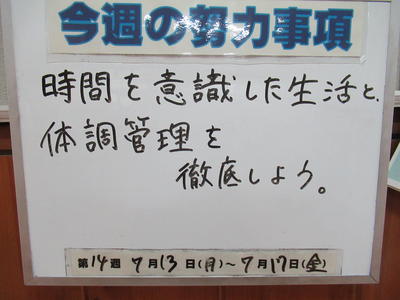 今週のめあてです。今朝のように寒かったり、蒸し暑かったり、気温の変動が大きいです。