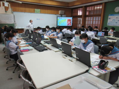 歴史的分野「日本列島の誕生と大陸との交流」の単元、コンピュータ室に入ると、モニター画面には「邪馬台国の地図と卑弥呼の写真」が・・古代史最大のミステリー”邪馬台国”、エピソード満載のため、私などは、つい話が弾んでしまう部分ですね。