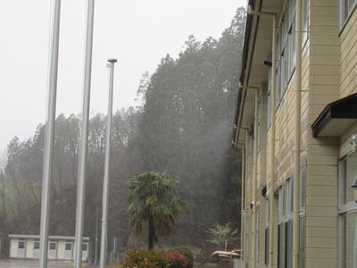 傘があまり役に立たず、制服を濡らしながら登校していた生徒もいたので、すぐに運動着に着替えるよう話しました。