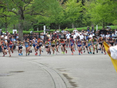 *女子スタート!(花の1区~右から5人目:オレンジの襷)