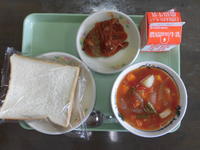 給食メニュー → 食パン 牛乳 ハンバーグ・デミグラスソースかけ ミネストローネ