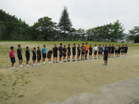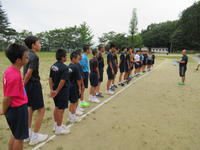 ウォーミングアップ後、ジョグ、流し走をやり、終了後のミーティングではメンバー発表!