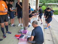 〔ユニフォーム・ナンバーカード等を渡します〕