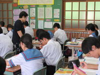 担当者がモニターを使いながら、テンポ良く発問を投げかけると、生徒からは活発な反応があります。