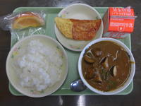 給食メニュー → 夏野菜カレーライス 牛乳 オムレツ・ケチャップソースかけ オレンジ