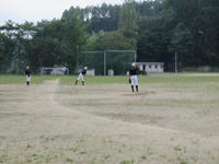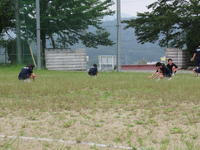 2年生が1年生に守備位置等を指示しながら、繰り返し練習しています。