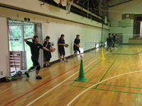 途中からは顧問自らがコート以内に入り、狙うコースを指示し、繰り返し練習しています。