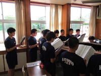 男声パートは、猪狩知裕くんの伴奏に合わせて、音程に気をつけながら、元気な声で練習しています。