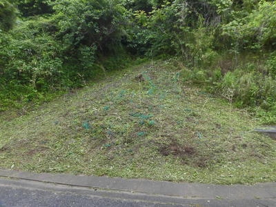 〔楮を植えた校舎裏の斜面、用務員さんが草刈りしてくださり、すっきりしました〕