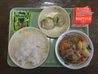 給食メニュー → ごはん 牛乳 えびにらまんじゅう