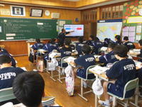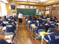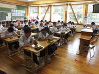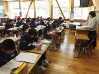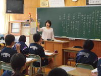 ひとくちに詩といっても、口語詩・文語詩・定型詩・・等いくつかに分類されます。今日の授業では、上小・上中校歌の歌詞を口ずさみながら、その規則性に気付かせるなどの展開がなされており、子どもたちも楽しそうに取り組んでいました。
