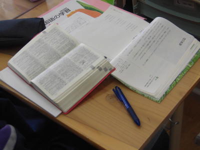 〔国語の授業では常に辞書を手元に置いて、すぐに調べる習慣をつけさせています〕