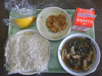 給食ならではの、小さな器に麺を入れているから起こる現象だそうですが・・・。