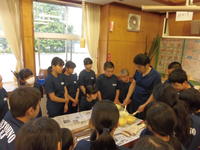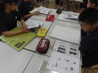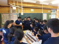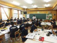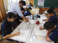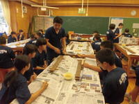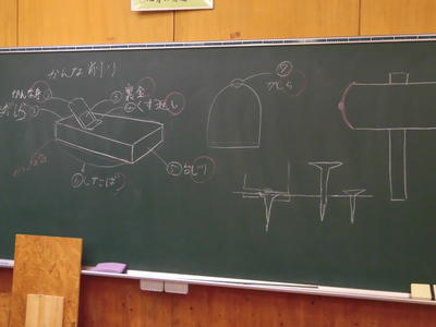班ごとに、切断⇒かんな削りを終えて、今日は塗装する工程。担当教師の注意を聞きながら、水性塗料で慎重に塗っていました。