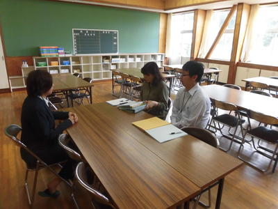 本日、遠野地区を担当している県のスクールソーシャルワーカーである荒川優子先生が来校し、本校のスクールカウンセラーである重田直毅先生と、本校養護教諭が話し合いを行いました。