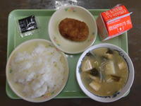 給食メニュー → ごはん ひじきのり佃煮 牛乳 にんじんとメンチカツ・ソースかけ